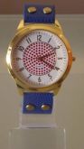 Relógio com Detalhes Dourado e Pulseira em Couro Azul e Fund